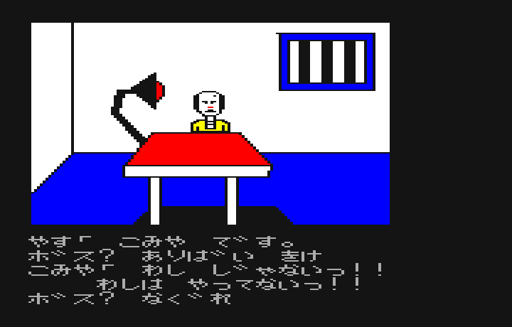 システムは当時流行していたコマンド入力方式で、「キケ」「サガセ」「シラベロ」といったコマンドを直接打ち込んでヤスに指示を出し、捜査を進めていく。