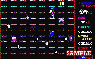 | 特徴(概要) | 忍者になっていろんなものを盗んでいくゲーム。画面は数段に分かれており、敵忍者が上下に移動しているので、それをよけながら横に進んでいくゲーム。 | ||