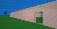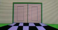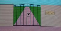屋敷の門にやってきた。中には何がボクを待ち受けているのだろうか。でもでかいドアだなぁ。しかしこのドアには鍵はかかっていない。 |
