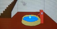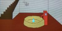 ぱぁっと明るくなったところには、給水場が。あの光ってるビンは何だ?取ろうとしても手がとどかない。ポンプからは水も出ない。どーすりゃいいんだ? |