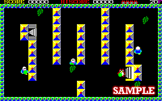 | 特徴(概要) | ルーティラクーンはたぬきの子供。きのこが大好物。ある日のこと、ちょっと目を離したすきに大事なきのこがすべて逃げてしまった。必死に追いかけるルーティ。いつしかマジックガーデンに迷い込んでしまった。そのときルーティの頭に母さんの言葉が浮かんだ。「マジックガーデンには絶対に近づいてはいけないよ。あそこにはこわいモグラやドングリや小人がいて見知らぬ人に襲い掛かるからね・・」しかし、入り込んだからには仕方がない。燃えるタヌキ魂でマジックガーデンをかけまくるのだ・・というストーリー。固定画面のアクションゲームで、敵はモグラやドングリ。花は開いたときだけとることができる。でも取らない方がいいことも。タヌキは化けることができ、木の葉をもって宙返りすると敵をやり過ごせる。 | ||