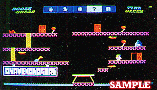 | 特徴(概要) | ディスク版50面、テープ版30面のリアルタイムゲーム。電気モンスターのボルター・ワットマン・ウォームから逃げながら、アキハバラランドの中の宝物を集める固定アクション。アキハバラランドは不思議な電気の島で、乾電池にカセットテープ、ヘッドホンステレオにマイコンが空中にぶらさがっている。この島の電気製品を集めるのが目的で、先のモンスターの他に、触ると死ぬ電気プラグ、強風で邪魔をする扇風機、冷気で凍らせるクーラーなどの敵が登場する。5面ごとにボーナスステージがあり、ぶらさがっている食べ物をすべて食べるというもの。全部とるのはなかなかやっかい。 | ||