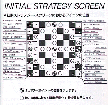 このゲームの勝利条件は2つ。ひとつは相手の駒をすべて画面上からなくすこと。もうひとつは、盤上の5箇所のパワーホイントを自軍の駒ですべて埋めることです。