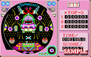 | 概要 | 名機ブラボー10(1~180番台)、キングタイガー(181~370番台)、の2機種全240台から台を選び、釘拡大機能で9ヶ所の重要な釘の状態を確認して、電動/手動を選んであそべる、高機能パチンコシミュレーション。元はPC-9801版。 | ||