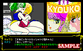 | 概要 | 内山亜紀が描くHな少女のエッチゲーム。キョウコの職業は秘密。ただひとつわかっていることは美少女たちを悩みから解放してやるために存在している堕天使だということたけ。 | ||